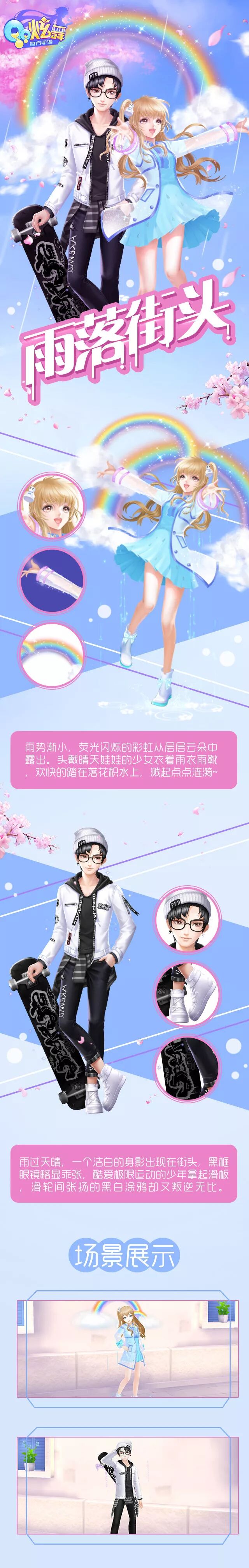 最近阴雨连绵,仔细一想原来是各个学校都期末考试啦! 星瞳要考考你们: 为什么期末考期间会下雨呢? 嘿嘿~其实 比起烈日炎炎,雨后的清爽更适合街头游玩呢!今天给dancer们带来 潮流感十足的雨落街头套装 ,雨后可要玩个尽兴哟! 菜单栏回复“ 雨落街头 ”获取高清海报 新时装 明天上架超时空极光 哦~还有 很多福利 一并来袭呢! 登录送好礼 全新游戏登录礼 来啦~今日起,每日登录游戏,就能够获取 丰厚奖励 ! 免费送电影票 下雨天,当然和看电影最配啦~今天星瞳就要免费请dancer们看电影! 参与方式 dancer们只需要在公众号菜单栏回复“ xy+你曾经在雨天发生的趣事 ”,星瞳会随机抽取 50位 dancer送出《动物世界》的电影票哟! 星瞳每次考完试都会大吃一顿来犒劳自己辛苦很久的胃,啊呸,是心!那么,不知道 dancer们一般都会选择做什么释放压力 呢?写【 留言 】和星瞳说说吧~ 公众号专属福利 绑定账号 :绑定游戏账号,即可获得超值绑定礼包! 每日一题 :天天免费抽奖! 光效时装 和超多福利等着你! 每日签到 :天天签到,多种大礼等着你们!累计签到奖励更丰厚! 积分任务 : 小灯管口红 和各种游戏礼包等你来免费兑换! 点个赞,雨天也要快乐哦~ 来源:QQ炫舞手游 阅读原文