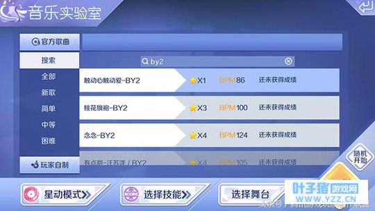 QQ 炫舞手游中 BY2 的歌曲,覆盖了 1 星难度到 7 星难度,比较适合新手玩家入门挑战。其中 1 星难度《触动心触动爱》相信所有炫舞玩家都不陌生,作为 1 星难度歌曲同样是事务所玩家必须挑战的歌曲,这首歌轻快的节奏旋律大家一定会喜欢。另外玩家如果想要挑战 BY2 的所有歌曲,可以通过游戏中的音乐实验室,搜索 BY2 的名字来快速选择。