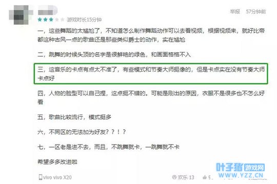而笔者在体验游戏后发现,撇开“卡顿”和“服务器进不去”这些设备因素而言,“手感差”和“不好看”才是造成《QQ炫舞手游》口碑落差的重要原因。在TapTap上众多玩家热评中,很容易就能找到对《QQ炫舞手游》游戏手感不满意的评论: