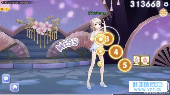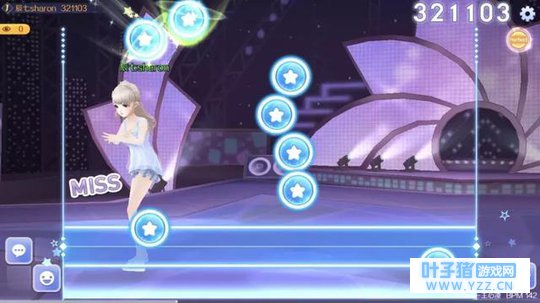 “泡泡模式” 因此,这些看似简单又多样的玩法创新,使游戏做出了更多针对新老用户不同需求的差异化道路,即新用户体验游戏门槛更低、《QQ炫舞》端游老用户、音游核心用户体验游戏则玩法更深。 在判定方面,游戏中分为“S.PERFECT”“PERFECT”“GREAT”“COOL”“BAD”“MISS”,note的判定更加宽容。在谱面难度上,围绕着BPM(Beat Per Minute,即每分钟节拍数单位)分为简单(BPM 80-100)中等(BPM 100-130)困难(BPM 140以上)3个难度间的等级进阶,而围绕着任务引导与排位级别,曲目难度曲线并不陡峭。 也就是说,玩家在游戏中的技术进阶,如果遵循着“新手引导+等级提升解锁游戏模式(星动、弹珠、泡泡三种游戏模式)→“事务所”章节任务引导(简单、中等、困难三种难度模式)→休闲局、单人排位赛→追求AC(All Combo) → 追求AP(All Perfect)、S”这个顺序的话,游戏门槛则会大大下降。 而在游戏中后期高端局后,也更考验核心高玩的操作模式。比如,在体验了三种模式的困难模式后,龙虎豹发现,“星动”局的困难模式中,随着BPM的提升,局内音符下落速度将会改变,音符下落方向亦会交叉,同时长键也会出现左右手不平衡的多变节奏,常需要玩家“背板”才能达到AP。 同时,“泡泡模式”本身note出现随机性较大,随着难度提升,note出现的位置则更加多样,速度更快,也更加考验玩家的反应能力。 事实上,由于音乐游戏的一贯特点,用户要想达到高玩水平,需要花费极多的时间,因此较为小众化也成了音游的桎梏。 但倘若说音游相对小众,那么区别于此的是,作为音舞类网络游戏,《QQ炫舞手游》在整合了音乐品类游戏移植移动端的玩法方案后,实则用户定位非常明确。 即,在物理键盘反馈还原端游触碰感与打击感后,引导端游玩家回归的前提下,广泛地辐射大众用户群。