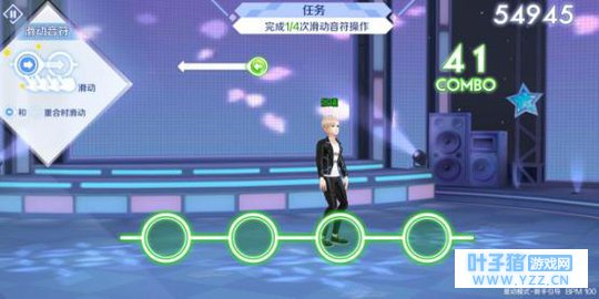 传统模式 星动模式则与腾讯的另一款音游节奏大师操作方式类似,四个按键击打下落气泡,包括滑动、长按等都是玩家十分熟悉的互动手法,不过与节奏大师相比,该模式的节奏感和打击手感只能算是差强人意,以至于在玩家中甚至不乏一些“不用听音乐也能ALL COMBO”的言论出现。