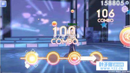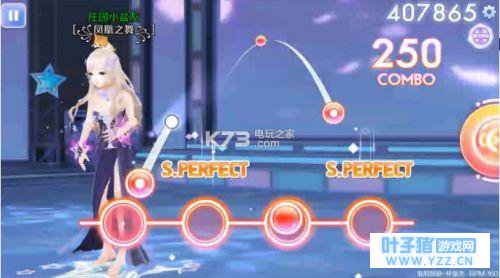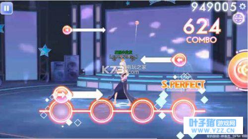 《爱的鼓励》歌曲中间部分算是歌曲的一个小难点,这里会穿插一些变轨音符,变轨音符是长按音符,但是并不需要滑动,所以基本也没什么难点。这里注意保持音符衔接,尽量保证音符S.PERFECT节奏。说明一下,爆气依然在Show Time之后开启,这样可以减少不必要的MISS出现。