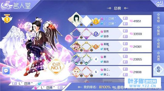 最后要隆重介绍的是心动榜,专属 CP 们的排行榜哦!评判的唯一依据是 CP 之间的心动值,一起玩游戏、互送礼物等,都可以提升心动值哦。如果你觉得自己的感情够甜蜜的话,那么就来心动榜看一看自己与 TA 在心动榜上的排名到底几何吧!