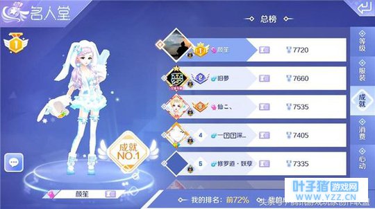 第二个领域则是“服装”,这里的服饰并不是说服装有多好看,主要的评判依据则是服装的收集数量。从目前的数据来看,排名靠前的玩家已经收集了高达 1000 多件服饰,这样的数据有没有吓着你?如果你觉得在服装的方面自己无法入榜的话,可以关注下成就领域。这里的评判标准是成就点,大家多多关注成就系统,获得的成就点越多,排名自然就越靠前哦。