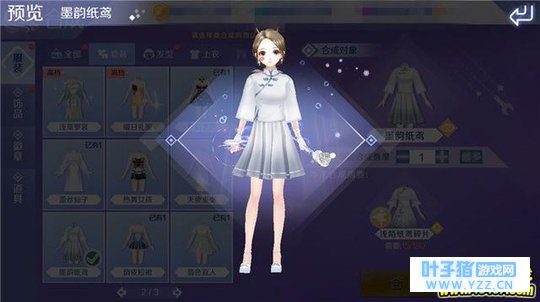 在工坊的合成功能中,可以看到我所积累的各个服饰碎片,刚刚获得的这个“阡陌纸鸢”碎片可以在工坊中合成一件“墨韵纸鸢”的民国风短裙,整体来说是灰白色的,上衣是带盘扣的七分袖,下装是渐变色的短裙,非常时尚!今年我们在毕业季的时候也穿了这样的民国学生装来拍照片,不过那个是蓝色上衣黑裙子,样子复古传统了一些,游戏里的这套民国服装既漂亮又时尚,如果现实中也有这样的一套衣服,应该拍照也是非常漂亮的!
