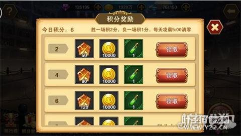 每胜利一场积2分,负一场积1分,积分在每天凌晨5:00清零。积分达到奖励获取条件后可以获取对应数量的古拉杜纪念章、金币及高级经验药水。 [编辑:叶子猪小秘书]