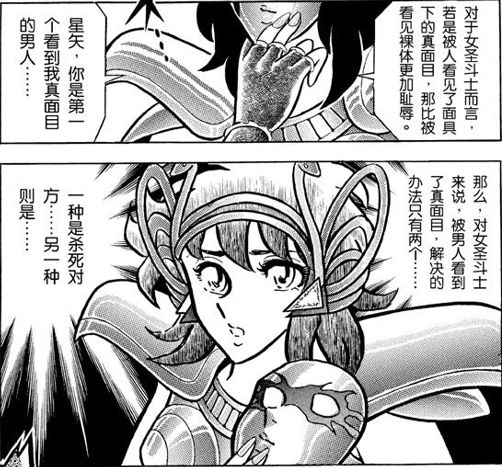 对于这样严苛的规定,相信很多小伙伴都会有些疑惑, 女圣斗士的小姐姐们明明都是颜值逆天的美人胚子,为什么非要戴着冰冷的面具示人呢? 从原作中,我们得到的大致是这样的答案: