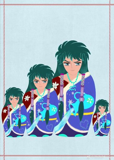 因为在俄罗斯工作了一段时间,很喜欢 俄罗斯套娃的工艺 ,本身我最喜欢的角色卡妙也在俄罗斯东西伯利亚修炼,因此就萌生了把圣斗士人物画成套娃的想法。