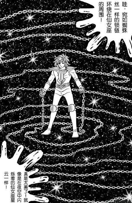 左手的圆锁可化成铜墙铁壁保护身体,据说仙女座锁链的防御本能在圣衣中堪称是最高的;右手的角锁可找出敌人躲藏的地点发动攻击,不管敌人距离多少亿光年,它都有能力进行攻击。
