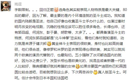 上一期的 选角活动 在大家的热力支持下 产出了无数 脑洞名单 为什么漫改剧不够成功? 贵鬼觉得完全是因为 没有采纳各位的意见 我们圣迷才是被生活耽误的选角导演 快来看看我们留言区里都经历了神马吧↓↓