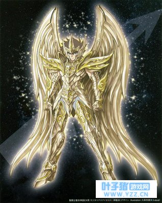 小欣点评:天蝎座的神圣衣将蝎子的双手给巨大化了,成为了背后的翅膀。比起之前的黄金圣衣,天蝎座的神圣衣真的是帅气了很多。 No.9射手座 艾俄洛斯 帅气指数:5颗星 人气指数:5颗星