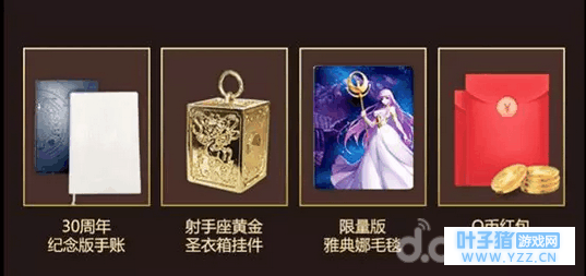 齐集十二宫黄金圣斗士的卡片就必得!必得!必得!圣斗士纯金纪念钞!这款珍贵的纪念钞以999纯金打造,采用高科技激光浅雕的手法,在金箔上雕刻、烫金而成,雕工精美,栩栩如生,惟妙惟肖。除了纪念钞之外,我们还为大家准备了精美周边放进红包里面:实用的30周年手账,精美的圣衣箱挂件,暖暖的雅典娜毛毯与万能的企鹅币,打开任意红包都有机会获得(每个红包仅可开启一次哦)。