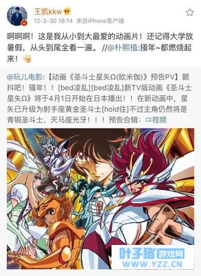 后来,王凯在自己的微博中亲口承认了自己从小到大最喜欢的动画片,果然就是《圣斗士星矢》! 其实王凯这个年龄段的男孩喜欢这部动画片一定都不奇怪,毕竟是伴随大家成长的动漫,可见王凯虽然总是饰演深沉的角色,但是内心里却还是有一颗动漫童心啊!