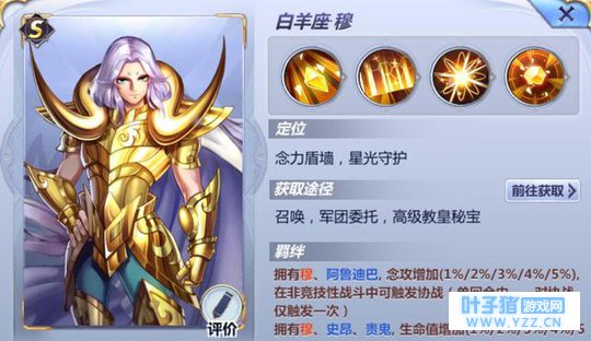 NO.7白羊座穆 可能很多人不服气,穆有水晶墙还有输出技能星光灭绝,耗费能量也少,怎么就排的这么低了,这里考虑的是综合实力,一方面圣斗士自动AI系统很有问题,对于这种给盾的圣斗士,如果不是群体护盾的话,单体护盾你根本摸不透电脑会攻击你的哪个单位,所以穆核心的水晶墙技能直接就被废了,同理PVP也是一样,说句不好听的,我宁可用紫龙给上天龙盾。