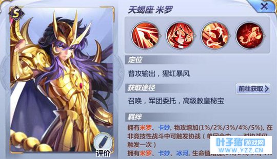 NO.2处女座沙加 沙加之乐光辉所一般吧,但用起来是真的好用,因为自带沉默和多段攻击,这游戏早期控制式神一旦控住了那就是大优势。沙加自带输出和控制于一体所以功能性自然不用多说,而且耗能不多对召唤物有奇效,实用度是一流的。
