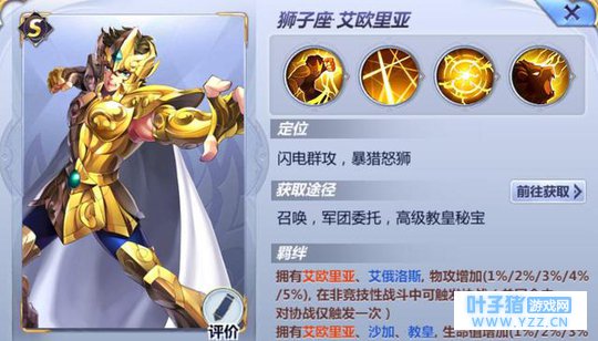 NO.6狮子座艾欧里亚 这游戏前期有群攻和单段超给力的都是大爷,不过小艾的群攻鸡肋的不要不要的,等离子光速拳群攻细数贼低,想要触发多段要么看脸要么就要控制,所以玩好小艾必须要搭配拥有控制能力很强的斗士进行配合,不然只能看脸了,这游戏涉及到看脸因素的圣斗士评分都会大幅度下滑。