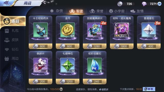 对于普通玩家来说每周随便打打银河混个6000银河竞技场荣誉还是不难的,不过这个荣誉买技能碎片感觉还是有点小贵的,一个技能魔典碎片要卖2500荣誉,一周6000分也就只能换2个而已,本着蚊子再小也是肉的心态,这2个碎片还是要拿的。 星象之轮