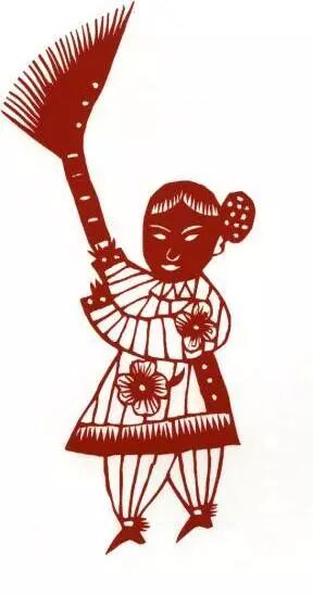 扫晴娘 扫晴娘是中国民间祈祷雨止天晴时挂在屋檐下的剪纸妇人像。妇人手携一苕帚,常以红纸或绿纸剪成,陕西汉中一带叫“扫天婆”。 挂扫晴娘像是流行于北京、陕西、河南、河北、甘肃、江苏等地的传统民俗。 扫晴娘在 元代初年已有,李俊民所作《扫晴娘》一诗写道:“卷袖搴裳手持帚,挂向阴空便摇手。”明清两代,扫晴习俗在中国民间盛行,富察敦崇《燕京岁时记》亦记载了此俗。实际上,这是一种中国民间止雨巫术活动,如同贴龙王像祈雨一样,为的是止断阴雨,以利晒粮、出行。