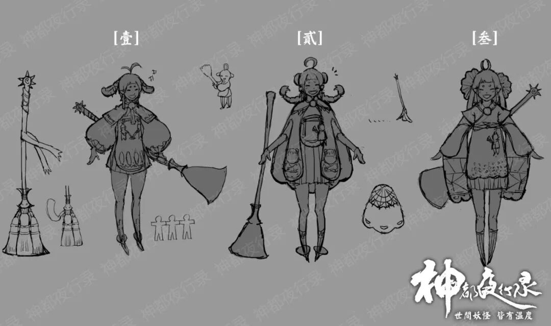 最后!开花组的大大们 综合了各位大人的反馈,决定以【贰】设计图为原型,并结合【叁】中的小纸人元素来细化扫晴娘的形象,同样高人气的【叁】设计图的形象会经过优化后制作为时装~