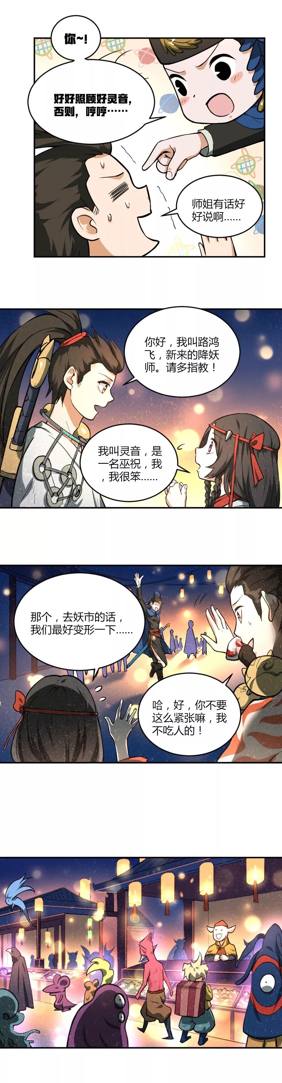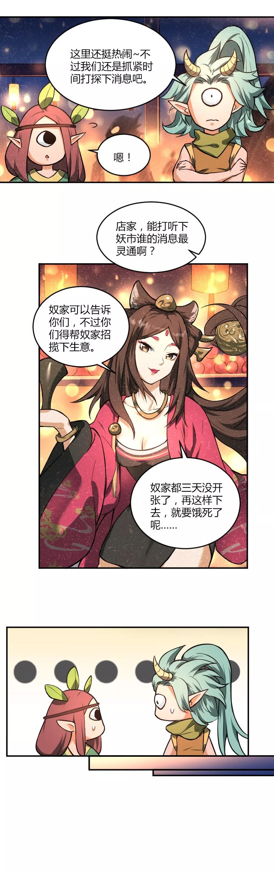 待婉儿收起被惊掉的下巴(¬д¬。)…… 不过,这一回的故事又出现了新的角色——可爱的巫祝萌妹子灵音呢!话说,妖市里面卖画皮的猫妖姐姐娴婵,也是妩媚可爱,别有一番迷人气质呀~ 啊~~神都有这么多可爱的小姐姐真是太好啦!(要是都收进婉儿的后宫就好了,嘿嘿)