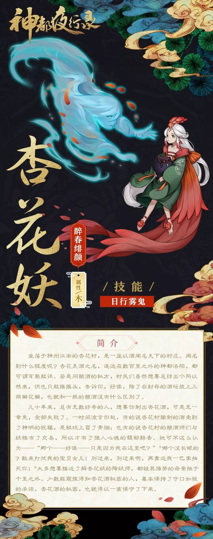大人们是不是也对她充满了好奇呢?~不过婉儿手上关于杏花妖的信息已经全部都跟大人共享了,欲知更多她的故事,就跟婉儿一起期待杏花妖的妖绘卷吧~