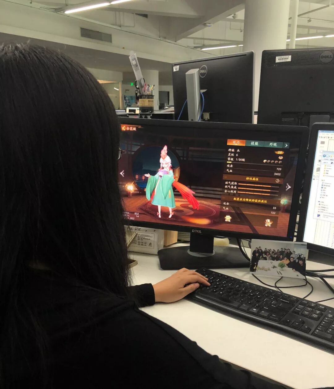 婉儿踮起脚拍到开花组小姐姐屏幕上的杏花妖啦! 杏花妖还真是 个子娇小 ,内八字的站姿果然是萌妹子必备~