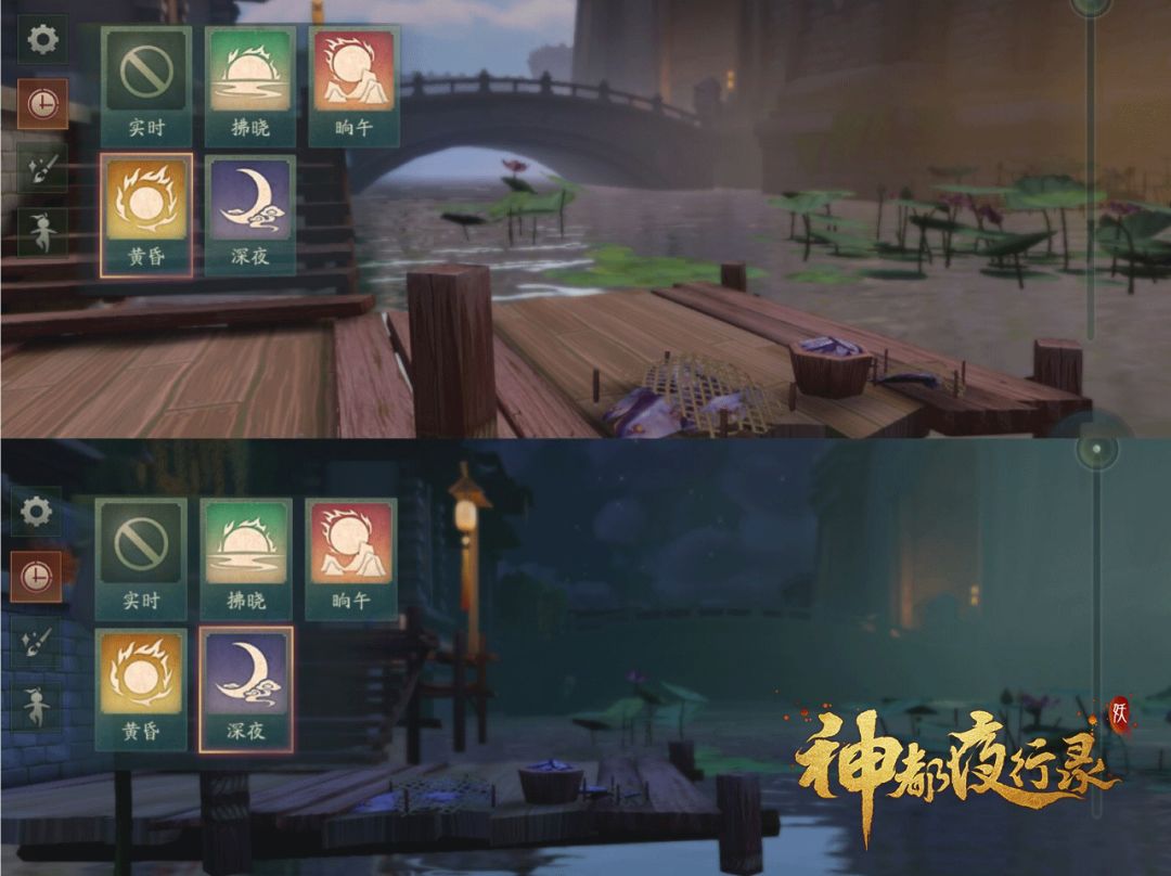 时间设置可以变化镜头为4种不同的时间段 拂晓、晌午、黄昏、深夜