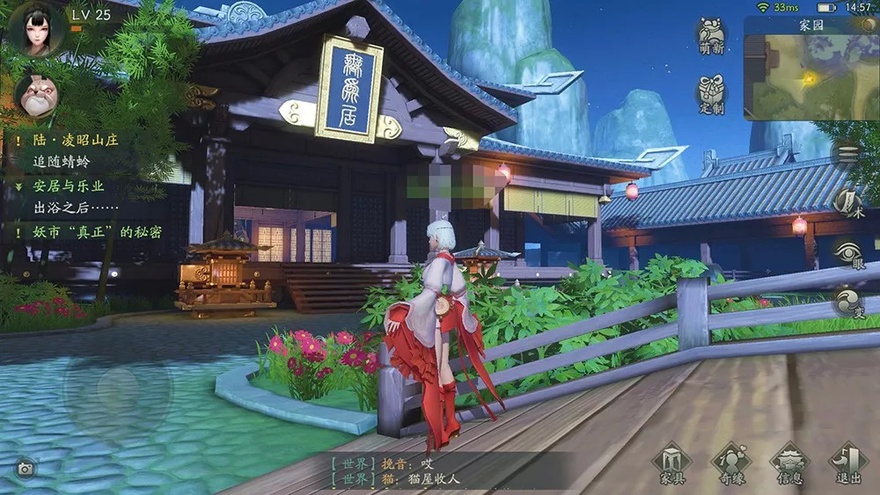 家园非常非常的大,进去要迷路的程度。里边还很空旷, 家具,摆设,植物等需要之后自行购买添置。 休闲玩法分别是 沐浴、奇缘、垂钓、寻宝和跳舞 ,过主线五章后解锁。 你可以挑选师叔降妖司掌司大人李淳风 激情泡澡,互相搓背 ,顺便聊一聊大唐最近的八卦。还能在家园中欣赏兔二爷跳舞,一起玩捉迷藏,甚至是和其约会散步,有点刺激了。