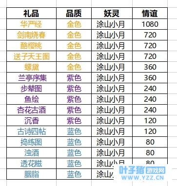 千年神龟:以60%的妖气状态开始战斗;满破后75%开始战斗。 涂山小月送礼选择: 喜欢:书籍 讨厌:妆品
