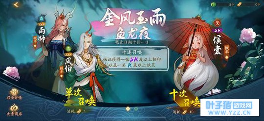 回到今天的正题。风伯和雨师这两个SSR妖灵的诞生情况。雨师是水属性的妖灵,风伯是木属性,水属性此前已经出过一个河伯,所以雨师期待值不高,风伯是第一个木属性,所以很多玩家倾尽全力去想拿到。