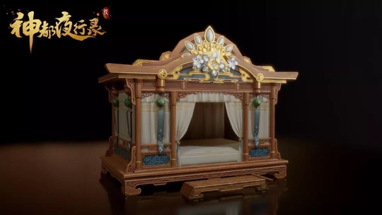 我心与梦 美人相思隔天阙人的三分之一的时间是在床上度过的,所以一款好的卧床或者躺椅是非常重要的。棠梨映月·宫寝梦是一款轻纱幔帐木床,床面宽大舒适可以容下两人休息,方便大家邀请好友留宿歇息。四周的纱帐可以有效的遮挡月光,使得降妖师们可以更快进入到睡眠。