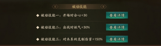 涂山爻被动: 被动技能一:开场时会心+30 被动技能二:出战时妖气+30% 被动技能三:对木系的克制伤害+150% 评价:涂山爻的被动看起来没有任何亮点甚至可以说完全不匹配他身为辅助妖灵的被动,但二被动还是不错的,有些涂山爻在打挑战本的时间经常因为第一波boss狂暴前集不满气,那么提升二被动可以让涂山爻在boss狂暴前从容开大。这里同样有两个名词“开场”“出战”有些小伙伴可能会以为这两个名词是同一意思,其实不然,开场的被动适用于备战妖灵(即一开局不管是在出战位置还是备战位置,这一被动都会触发)而出战的被动只适用于出战妖灵(即出战才会生效,若放在备战位置,要等到出战才会生效)。 涂山爻阵容搭配: 涂山爻身为金系妖灵,在输出位置上不如剑圣和猫妖,在辅助位置上不如弈秋的加会心被动,在日常本中出场位置还是比较尴尬的,但在挑战本中,涂山爻的发挥空间极大,可以被称作t0位置,有涂山爻可以无伤扛过boss狂暴,让其他妖灵有更大的输出空间。 涂山爻拓印选择方面: