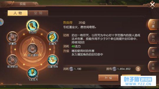 技能:通过提升人物的技能,也可以提升战斗力。除了提升门派技能外,在势力中提升五禽戏、禅定和瞬步这三个技能也能提升战斗力。势力技能前面25级是不需要门派贡献的,后面提升一级需要相对应的势力贡献。势力贡献可以通过完成势力任务获得。同时修炼功法和天赋都能增加战斗力。