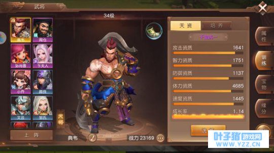 武将:赐予武将宝物,可以增加战斗力,赐予的宝物越高级,增加的战斗力越多。洗练武将的天资也能提升战斗力,所以一般都要把上场的武将的天资提升的最高。武将的评级越高,所增加的战斗力也越多。要想获得天将有两种办法,一是不断的招募,二是分解武将获得将魂,然后兑换天将,不过这个办法特别耗时间。