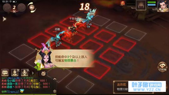 说说战斗吧,回合制战斗基本没什么可说的其实,但是三国如龙传的战斗与一般的回合制还真有所不同。 首先站位方面,不再是前一排后一排的经典站位,而是每一方在一个5*5的方阵中,学习了技能之后人物再战斗中是可以走位的!这点在后续的竞技战斗中增加的策略性,同时也增加了复杂度,以及各种小配合出现,总得来说相比于经典的回合制玩法算是小创新吧。技能在战斗中也不仅仅选目标放出去那么简单了,达成特定条件还可以触发技能的连锁效果,使技能威力加强,这个设定就让人物可以换位置有了更实际的意义。 而且角色放大招的时候都有职业专属的动画,可以说制作的比较用心。