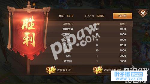 飙车有诀窍,宝箱轻松拿 在副本过程中,攻破城池的建筑以及击败地方士兵、工程车均可获得不同积分。击败黄巾士兵可获得100积分,击败三种攻城车均可获得200积分,攻破城门可获得3000积分,攻破房屋可获得200积分,攻破市集和仓库可获得1500积分,攻破书院和兵营可获得2000积分,最终攻破城主府可获得5000积分。