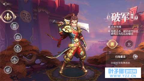 游戏画质:★★★★☆ 游戏操作:★★★★☆ 游戏音效:★★★★☆ 游戏可玩性:★★★★ 推荐指数:★★★★☆8.7分 六种职业 丰富选择 先和大家简单的说说游戏角色选择问题,游戏共有六种角色,每种角色都有男女两种性别可选。目前,游戏中有着破军,卧龙,巫灵,仙宗,神羽,幽冥六种角色。小编选择的是破军,追求物理力量的极致输出,在游戏中算是个半肉半输出的存在,攻击是单体,不过伤害还是很高的。