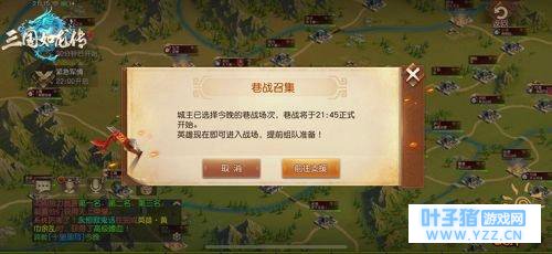 全民参与,即刻进入巷战 势力在攻破城池后即可获得开启巷战的资格,在21:15分时系统将会生成巷战的对战情况,各个势力将可以选择招揽雇佣兵帮助自己赢得巷战。其余玩家将会受到巷战召集的提醒,选择成为不同势力的雇佣兵参与巷战。