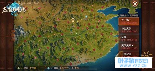 若在觉得在大地图上无法看清联盟领地的划分,还可通过点击右下角“巷战”,并在“天下”栏目中的地图更直观的查询各个势力极其盟友的城池占领情况。