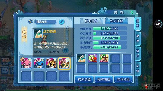 | PK赛神兽之浒浒 本次PK赛中出现了文文和跳跳,相信不少人看了另外一边的比赛,开始16进8是不禁药的,所以出现了很多人用文文和跳跳。参加过上测的玩家都知道,其实出现最多的还是水水和浒浒,虽然文文和跳跳是新神兽,但是兑换的人不是很多,那是为什么呢?PK赛中文文和跳跳又能起到什么作用呢;下面小八为你们一一揭晓~~~  文文: 大家从上图可以看出,文文的血量和防御成长相当的高,是一个名副其实的血牛,如果水浒以后真的出保护这个功能,那么文文也许就是最抢手的神兽了。 看完资质我们再看技能,高级金钟罩还有高级铁布衫,只要被打一次,防御会相应的提升30%,持续三回合,冷却五回合。2回合的空缺暂时不谈,文文本身还带有几率自动回血的被动技能,触发的话血几回合就满了,所以如果你需要一个血牛宝宝,那文文是你的不二之选了。  跳跳: 详情图可以看出,跳跳和浒浒差不多,体力资质几乎相等,差别就在于一个是把物理攻击力走到极致,一个是走收割套路。跳跳的敏捷成长非常之高,这可以让跳跳更早的出手,不管是收割残血还是做其他作业都能在其他人动手之前完成。 而且跳跳可以闪避法术攻击,虽然目前来说我没见到过,但是几率虽然低,人品爆发了就是不得了的事情。  总结: PK赛中对于出手速度的要求非常之高,大家装备什么的都几乎没差别,所以出手先后的顺序或者一点点运气的问题都能让你功败垂成。如果不禁药的话,那么队伍需要2个到3个跳跳解封,还需要2个文文当肉盾挡一挡伤害,当然就要比赛直接禁药了也就没怎么见到这2个神兽的身影。 |