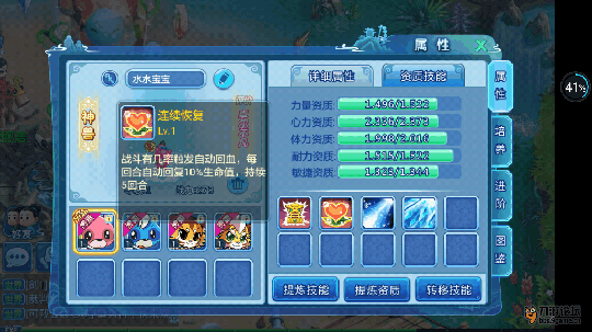 | PK赛神兽之水水 水水是神兽中性价比相对较高的一个,本身体力成长比较高,所以后期生命不会太少,主要属性心力就更不用说了。后期配合高级兽躯、物免、魔免等等技能,团战中是一个很重要的点。下面先来看水水的自带技能有哪些,又有哪些效果; 水水默认自带技能: 1:法力高深 战斗中获得10%的精神力加成,同时防御下降10%  2:连续恢复 战斗中有几率触发自动回血,每回合自动回复10%生命值,持续五回合。  3:冰封 对单体敌人造成2次法术伤害,有几率使目标灵巧值降低2回合。  4:水兮冰霜雨 对群体敌人造成2次法术伤害,有几率使目标灵巧值降低2回合。初始攻击2个目标,在自身等级达到30、60、90级分别增加多一个目标。  分析: 根据PK赛规则,宝宝是不能打技能的,那么水水群法的作用很大程度上被削弱了。没有异常状态技能,法术输出打到角色身上也不是特别的疼,所以水水的出场率目前看来比较少。 水水既然受限于PK赛,也可以尝试上五个水水,加一点点敏捷,主要杀对面的宝宝,当然这只是一个理想模式,受限于现在团战套路的走势,如果剑客是走同心流,那么会有用处,如果剑客是嘲讽流,而且第一轮嘲讽到了2个以上的目标,那不会有什么用处。 |