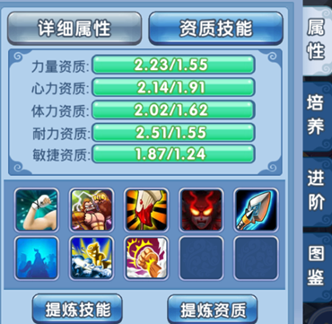 老司机提示一定一定要注意几个要点: 1. 抽到的资质会以该资质的下限来抽的。 举个粟子:阿喵宠物力量资质为1.31-1.45.那么抽资质的时候抽到力量资质卡就是1.31的。所以抽资质之前一定要把想要的资质洗满了再抽,如果是1.45-1.45的力量资质,那么抽到的力量资质卡就是1.45了。 2. 被抽资质的宠物要达到30级才能抽取的 3. 高等级的宠物资质卡不能往低级宠物身上打,举个粟子:用65级宠物抽出来的资质是打不了1级携带的神兽水水身上哦! 附上五项资质分别最高的宠物 力量资质:最高的为浒浒2.23 心力资质 :最高的为进阶的仙灵孔雀2.24+ 体力资质:最高的为进阶的巨岩兽2.14+ 耐力资质:最高的为水水的2.53 敏捷资质:最高的为65携带的贪狼1.87 第二.宠物技能 没钱挖高宝图弄高级技能啊!别怕,水Q手游为你创造平民逆袭高富帅的机会。许多水粉们看完抽资质心想不是技能也能抽吧?没错,技能也可以抽。