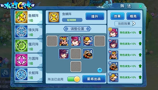 【合理布阵,策略至上】 需要提醒的是,阵营战中胜利的一方会保持出战宠物和星将的气血,平局或者失败则会回满血气。所以为了保证百战百胜,必须要策略性对战,保持战力持续输出,多备几个攻击力强的宠物和星将,一旦宠物或者星将阵亡的话,要赶紧替补上去。同时,在阵法上,可以根据自己的实际情况去挑选,输出型为主的云龙阵、物理输出为主的鱼鳞阵都是不错的选择呢~