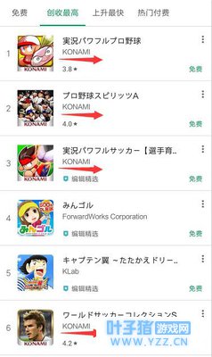还有他们的棒球游戏实况棒球系列,包揽了日本体育类手游收入榜单的前三。