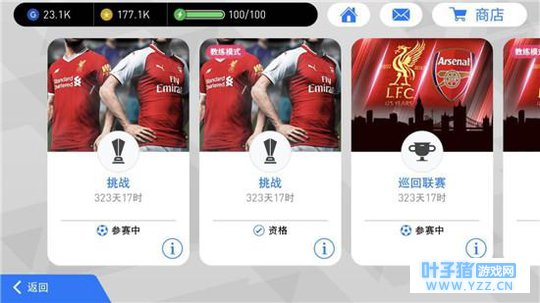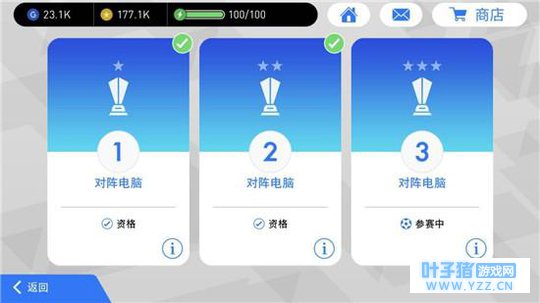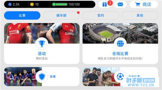(活动赛事选项界面) 你可以选择加入“活动”当中,迎接不同等级电脑,甚至是经典球队的挑战,同时,在由你创造的“联赛”当中,你将有可能遇到不同星级,特点各不相同的玩家队伍。 如同真实联赛设定,在“联赛”模式当中,随着玩家战绩起伏与积分的累积,你将有机会通过升级的方式,进入更高级别的赛事当中,与更强的队伍直接对抗,同时,连续的失败,同样也有可能为你招来降级的厄运。