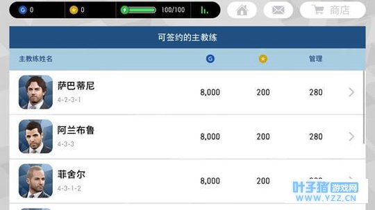 然后选择某个不知名的主教练来执教这个球队,属性差不多都一样,唯一不一样的是擅长的阵型,作为现代足球433的忠实拥簇,无可厚非地选择了这个阿兰布鲁来执教我的球队。