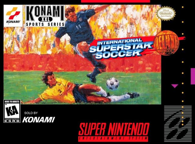 KONAMI《实况足球》,绝对是90年代球迷玩家必玩的足球游戏,几年前的《实况》与《FIFA》大战也是热门话题。《WE》前身名为《实况足球》,KONAMI在1994年推出超任《实况世界足球》,游戏最大卖点就是实况。 此作的画面在当年来说十分不俗、球员比例合理、有天气变化、入球后有回放重温等,收录24支国家队,各有不同阵型及打法,部分球员实名,而球员又有能力值。游戏又引入较多动作,射球及长传要蓄力,上述元素在现如今的足球游戏是必备的,但对于1994年一款超任游戏来说,内容绝对是超出玩家预期的。直到1996年,KONAMI正式将游戏改名为《WINNING ELEVEN》,而欧版原先叫《INTERNATIONAL SUPERSTAR SOCCER PRO》,之后再改为《PRO EVOLUTION SOCCER》。
