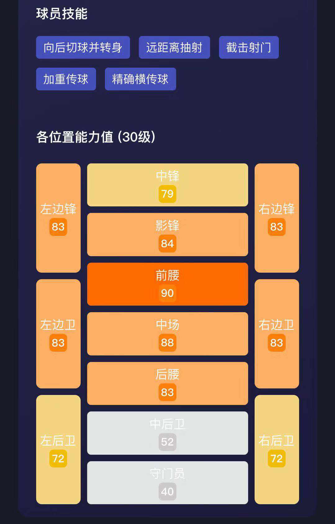 基础数据(30级评分:90)德布劳内有着现役前腰位置上的最佳评分,《实况足球》里面给到了90的30级评分,也是晋级闪黑球员。德布劳内目前年龄才26岁,可以说未来还有很大的上升空间,说不定有朝一日突破92大关也不是什么难事。而且德布劳内在《实况足球》里面满级评分高达94,也是相当恐怖。
