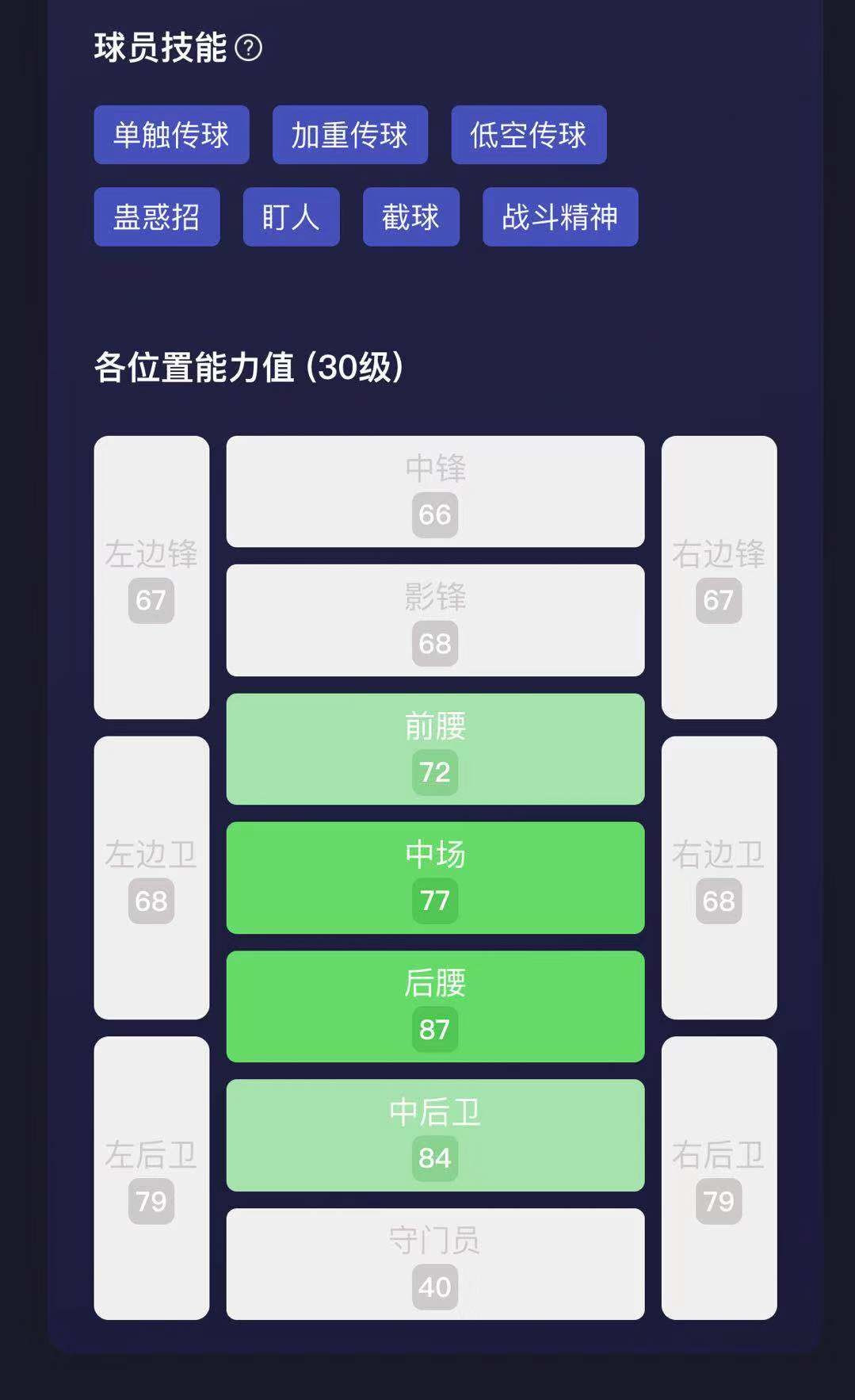 基础数据(30级评分:87)卡塞米罗本赛季在《实况足球》里面的评分也是提高到了87,上赛季还是金卡的卡塞米罗经过了一个赛季的洗礼加上世界杯上面的精彩表现成功为自己在《实况足球》里面赢得黑卡席位。而且卡塞米罗满级47级的评分也有90的高分。最主要的是,和内马尔一样是巴西黄金一代的卡塞米罗也就26岁,未来或许有机会将评分再次提高!