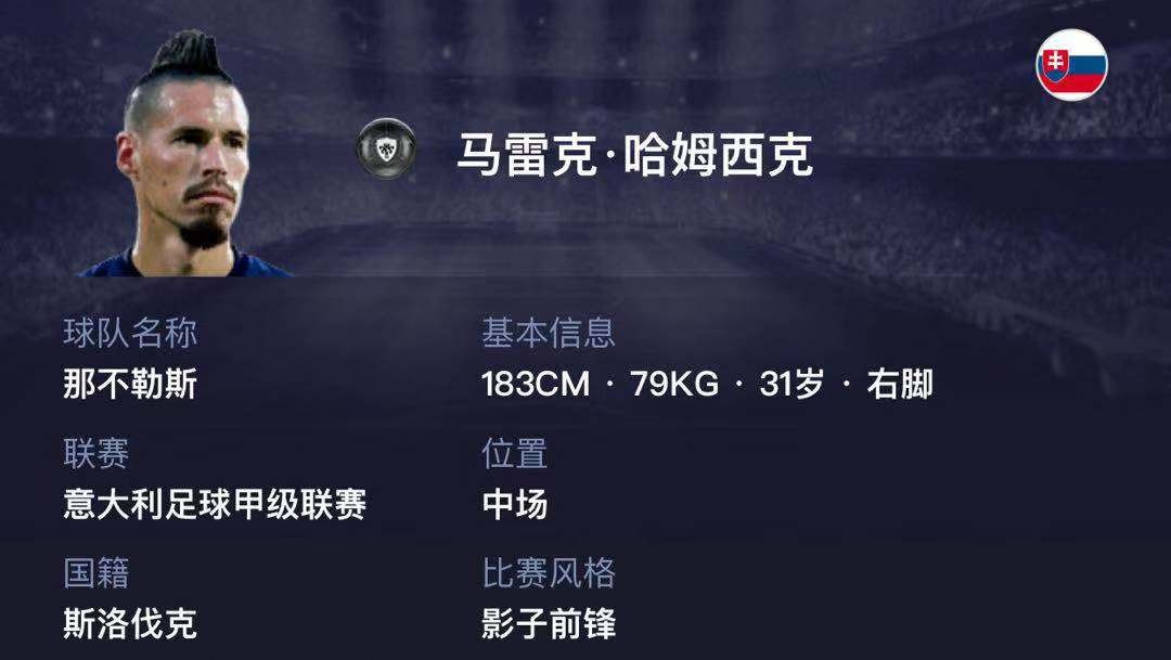 说到马雷克·哈姆西克,足球迷们应该不会陌生了。他那标志性的莫西干发型也几乎伴随了他整个职业生涯。但是玩家们如何看待《实况足球》里面的哈姆西克呢?哈姆西克在《实况足球》手游里面的评价也是褒贬不一。有的人说这位那不勒斯的大腿在《实况足球》相当强力,但也有玩家不是很喜欢哈姆西克的一些特点。今天小编就来带大家看一下《实况足球》里面哈姆西克的一些特点吧!